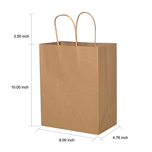 Brothersbox Brown Paper Luggage with Handles Bulk 100PCS Kraft Paper Luggage, 8 * 4.76 * 10 Inch Medium Craft Paper Present Luggage for Birthday Get together Grocery Retail Procuring Enterprise