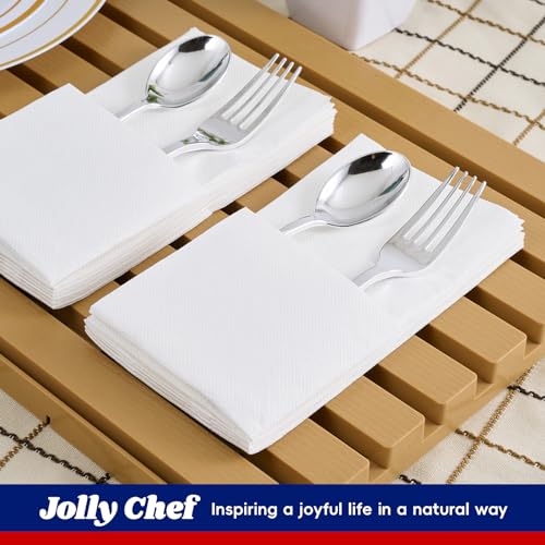 JOLLY CHEF 200 Pack Disposable Paper Napkins, Tender Lavatory Napkins for Company, 2-Ply White Paper Hand Towels for Halloween, Wedding ceremony, Thanksgiving