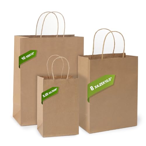 Specification: MESHA Brown Paper Baggage 8×4.25×10.5 Inch 100 Pack Kraft Paper Baggage with Handles Bulk Craft Present Baggage Medium Dimension for Wending Birthday Social gathering Favor Retail Merchandise Baggage