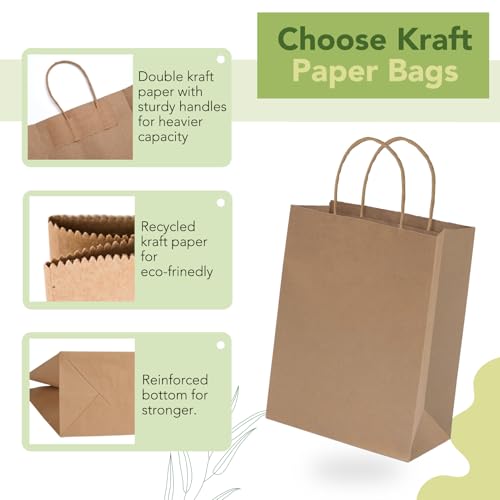 Medium Dimension Peper Baggage with Handles: 8×4.25×10.5 inches (20x11x27cm). These kraft paper luggage are designed for sturdiness and flexibility, that includes sturdy handles strengthened with double kraft paper and a strengthened backside utilizing higher glue for added power. This makes them able to dealing with heavier masses.