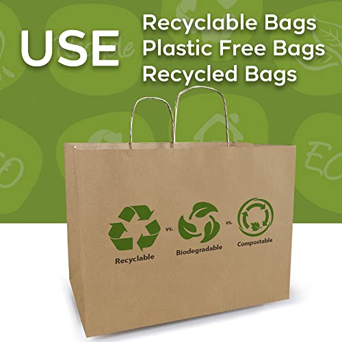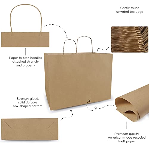 ♻️ ECO-FRIENDLY LARGE BROWN PAPER BAGS WITH HANDLES BULK – 300 pack 16x6x12 inches sturdy and durable brown bags are made of American premium quality kraft paper and have well structured paper twisted handles.